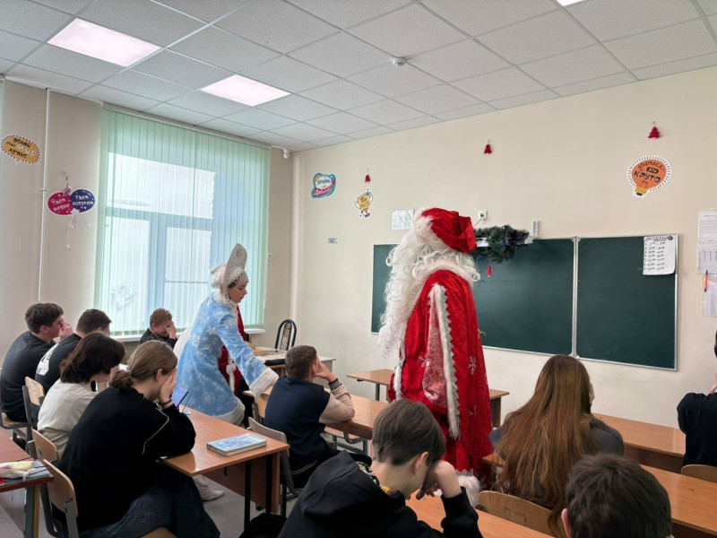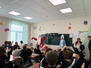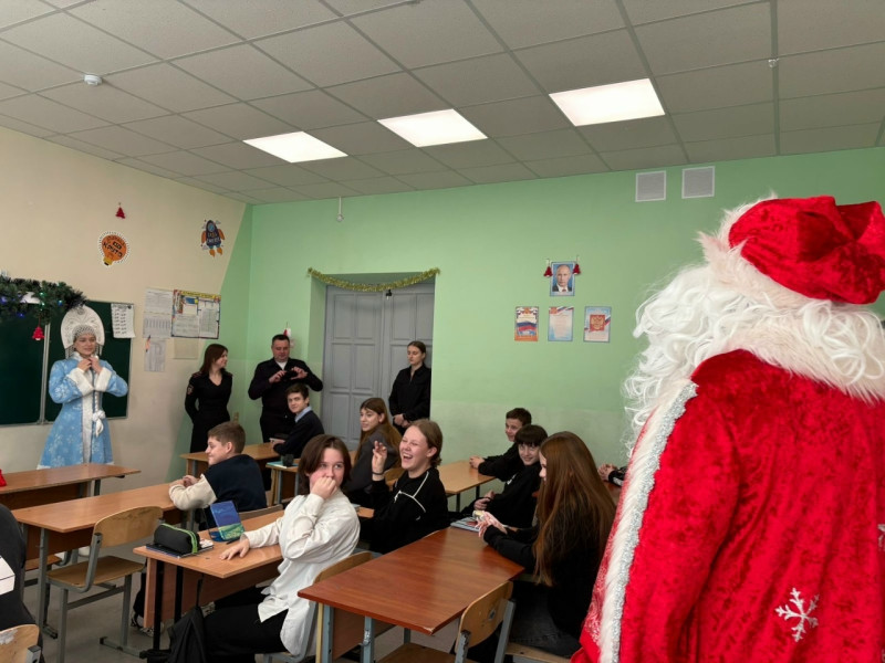 А затем наступил самый волшебный момент: Дед Мороз и Снегурочка поздравили ребят с наступающим Новым годом. Они пожелали ученикам здоровья, успехов в учёбе и, конечно, безопасной и весёлой праздничной поры. В завершение встречи каждый получил небольшой новогодний сувенир на память — приятный символ того, что забота о безопасности может быть не только важной, но и по‑настоящему праздничной.