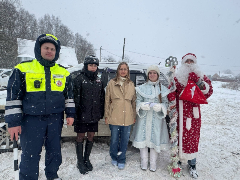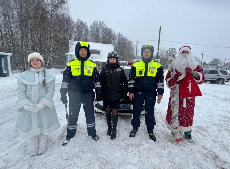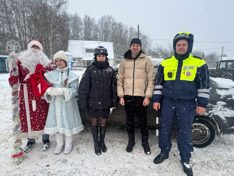 В преддверии новогодних праздников в деревне Богородицкое Смоленского муниципального округа состоялось яркое и душевное мероприятие: сотрудники отделения Госавтоинспекции ОМВД России «Смоленский» совместно с активистами движения «Движение первых» вышли на улицу, чтобы поздравить участников дорожного движения с наступающим 2026 годом. Акция объединила праздничную атмосферу и важную профилактическую миссию - напомнить о необходимости соблюдения правил дорожного движения в зимний период.