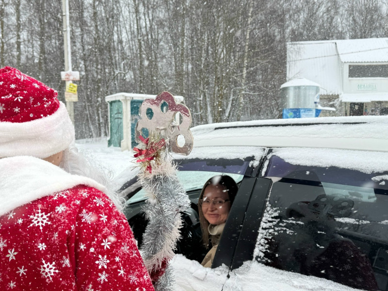 На оживлённых участках дорог граждан встречали Дед Мороз и Снегурочка. В их роли выступили волонтёры в красочных костюмах. Активисты подходили к водителям в автомобилях, пассажирам общественного транспорта и пешехода. Каждое поздравление сопровождалось тёплыми пожеланиями счастливого Нового года, а также небольшими, но значимыми подарками — новогодними конфетами в праздничной упаковке и световозвращающими элементами: брелками и браслетами.