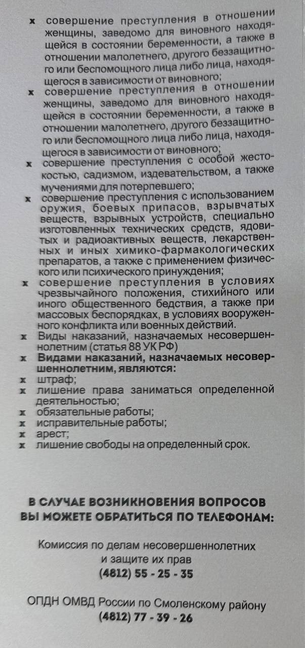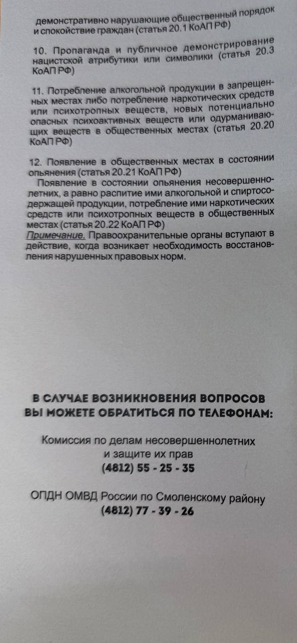 Администрация муниципального образования «Смоленский муниципальный округ» Смоленской области информирует несовершеннолетних и их родителей