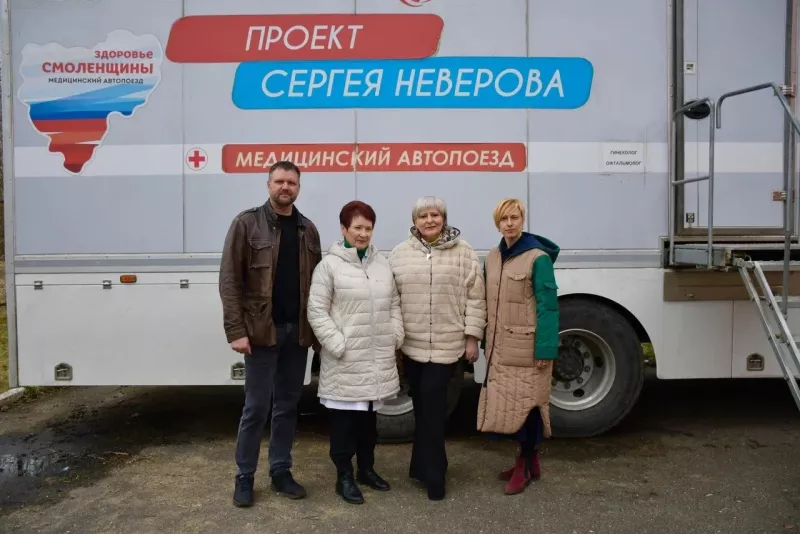 Глава Смоленского округа Ольга Павлюченкова посетила автопоезд «Здоровье Смоленщины» во время его работы в деревне Русилово. Ольга Николаевна ознакомилась с организацией приёма и вручила команде проекта Благодарственные письма — за профессионализм, неравнодушие и реальную помощь людям.