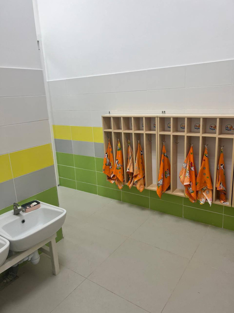 Санитарные комнаты: 13 санитарных узлов в групповых помещениях были капитально отремонтированы. Полная замена сантехнических приборов, облицовочной плитки и полотенцесушителей сделала эти помещения более функциональными и эстетичными.