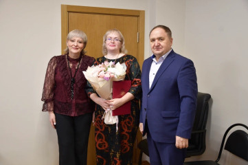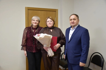 Ольга Николаевна совместно с председателем Смоленской окружной Думы Юрием Геннадьевичем Давыдовским вручили Почетные грамоты муниципального образования, приуроченные к юбилейным датам: Ирине Петровне Новиковой – директору Моготовского сельского дома культуры, Юлии Леонидовне Павловой– начальнику отдела бухгалтерского учета и отчетности – главному бухгалтеру финансового управления Администрации округа.