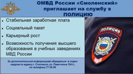 ОМВД России «Смоленский» проводит набор на службу.