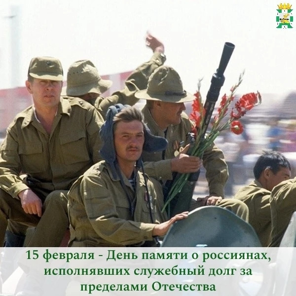 15 февраля 1989 года — день окончания долгой и тяжёлой войны, которая затронула судьбы многих семей. Мы с глубоким уважением вспоминаем тех, кто добросовестно исполнял свой гражданский и воинский долг, проявляя героизм и самоотверженность.