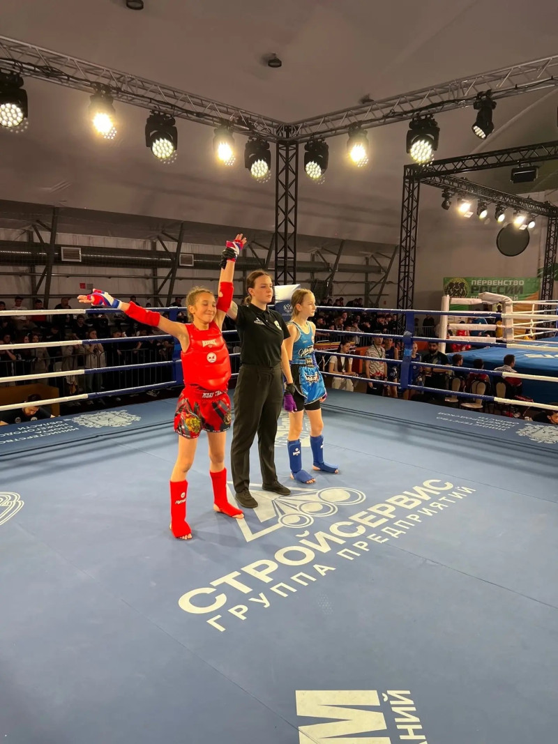 Поздравляем Пищулину Варвару, ученицу 5А класса Пригорской школы, с выдающимся достижением — золотой медалью и званием чемпионки России по Муай-тай среди девушек в весовой категории 38 кг (возраст 12 лет)!