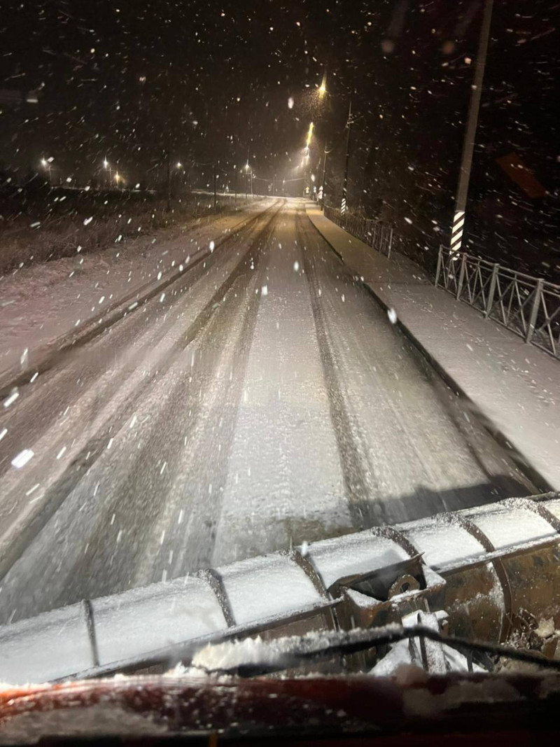 С раннего утра коммунальные службы приступили к очистке снега на автомобильных дорогах муниципального округа