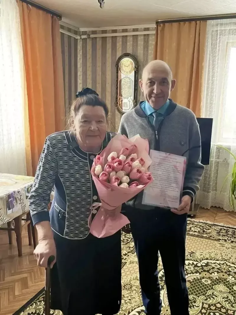 Павлову Веру Васильевну поздравил председатель Пригорского территориального комитета Олег Гончаров.