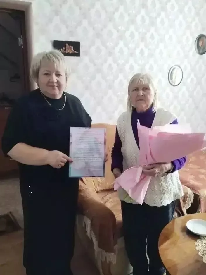 Плешкову Марию Васильевну поздравил председатель Стабенского территориального комитета Сергей Вехтев.