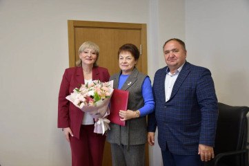 Глава Смоленского округа Ольга Николаевна Павлюченкова вместе с председателем Смоленской окружной Думы Юрием Геннадьевичем Давыдовским вручила Почетные грамоты муниципального образования, приуроченные к юбилейным датам: Васютину Тимофею Станиславовичу, главе крестьянского (фермерского) хозяйства, Константиновой Елене Владимировне, директору Трудиловской средней школы, Кулиевой Галине Павловне, менеджеру бюджетного отдела финансового управления Администрации Смоленского округа.