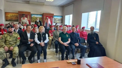 Затем в тёплом и честном разговоре о важном встретились юнармейцы, гагаринцы, ветераны боевых действий, педагоги, священнослужители и почётные гости: